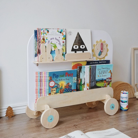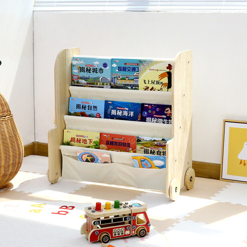 Einfaches Bilderbuch regal aus Holz für Kinder Abnehmbares Wagen regal Mehr schicht ige Aufbewahrung